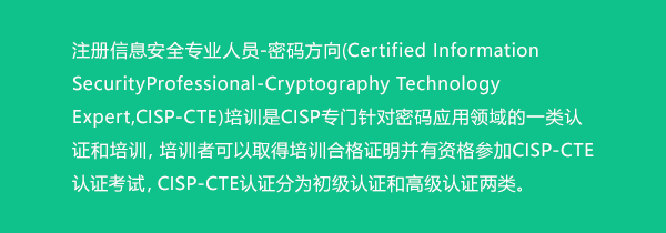 CISP-CTE培训教程由奥联牵头西安邮电大学、西安电子科技大学、西北工业大学30余位密码专家,前后历时2年参与编制,分初级和高级两个阶段。