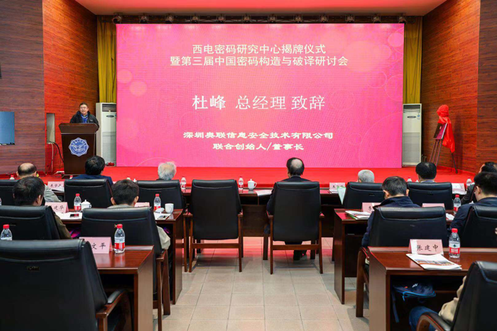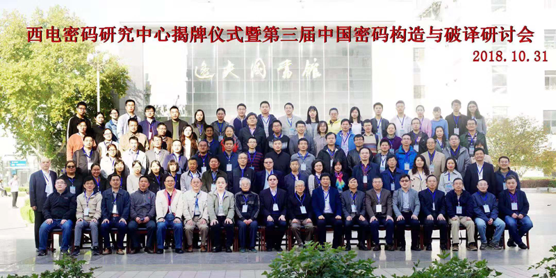 2018年10月31日,为纪念西安电子科技大学西迁60周年,弘扬肖国镇教授在密码学上的开拓性和奠基性贡献,振兴西安电子科技大学的密码学研宄,推动产学研一体创新体系建设,西安电子科技大学通信工程学院、综合业务网理论与关键技术国家重点实验室、深圳奥联信息安全技术有限公司在西安电子科技大学科技楼报告厅举办“西电密码研究中心揭牌仪式暨第三届中国密码构造与破译研讨会”。