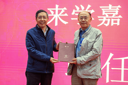 李建东副校长(左)为来学嘉教授(右)颁发名誉教授聘书