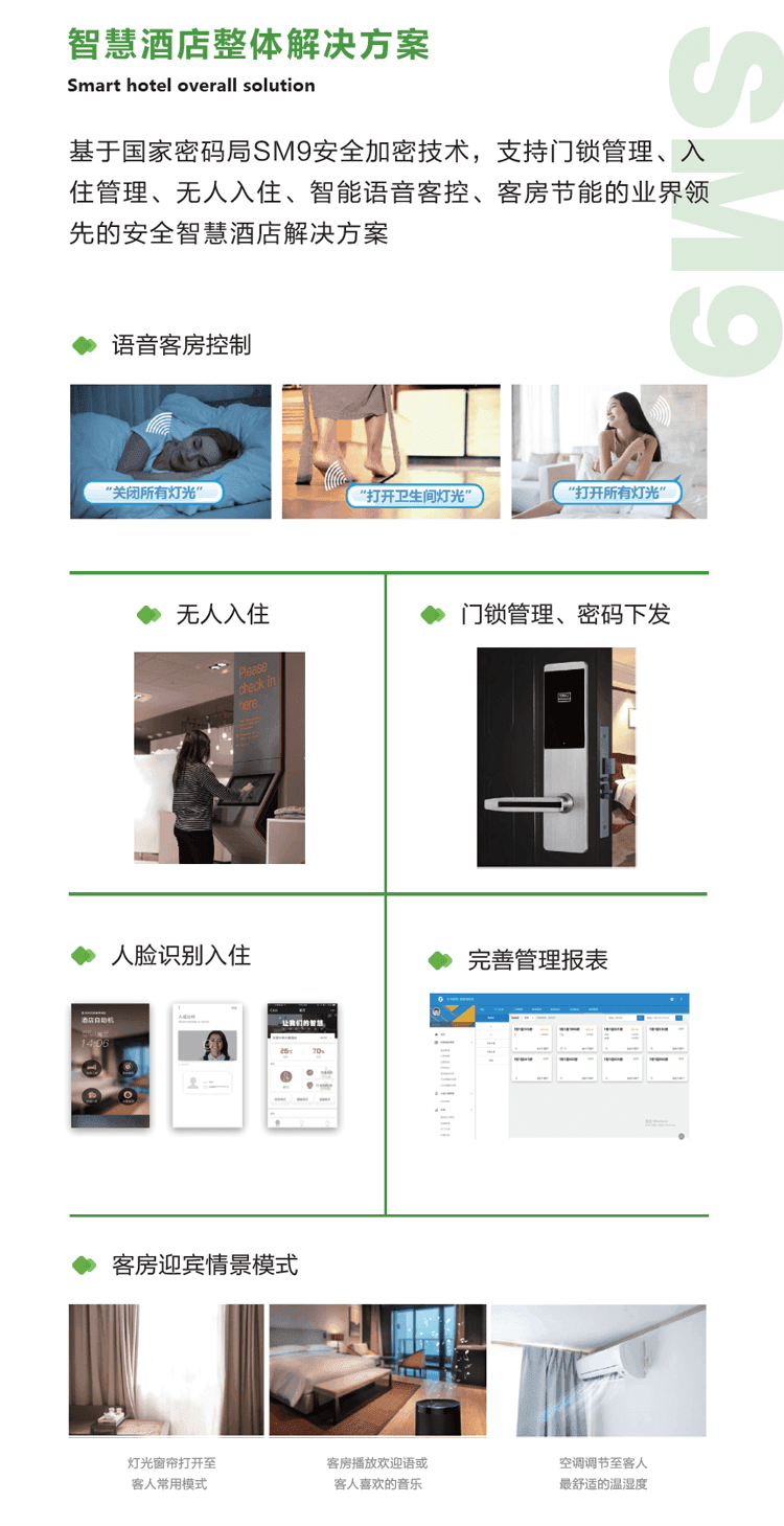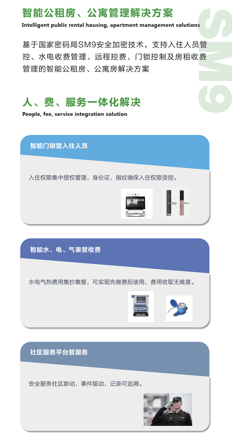本方案基于SM9标识密码技术,综合使用国密SM3/SM4系列算法,结合CHAP挑战应答、NTLS安全传输协议等安全机制,可以快速实现安全认证、安全通道、安全存储、数据加密、身份认证、数字签名等功能。解决联网智能锁系统中身份认证、数据安全、传输安全、访问控制等多种安全问题,形成完善的解决方案。